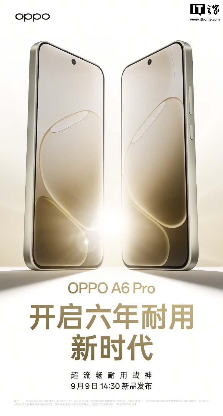 IT之家9月5日消息,OPPOA6Pro手机将于9月9日14:30发布,号称“耐用新一代配资网站,强悍更流畅”,外观海报今日对外公布。
